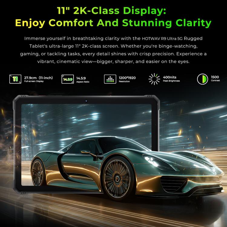 HOTWAV Tab R9 Ultra IP68/IP69K Rugged Tablet, 8GB+512GB, 11 inch Android 15 Unisoc T8200 Octa Core 5G Network, Global Version with Google Play, EU Plug